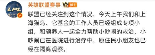 相关:草台班子?LPL全明星公益领养活动暴雷网友称领养猫携带猫瘟感染原住民